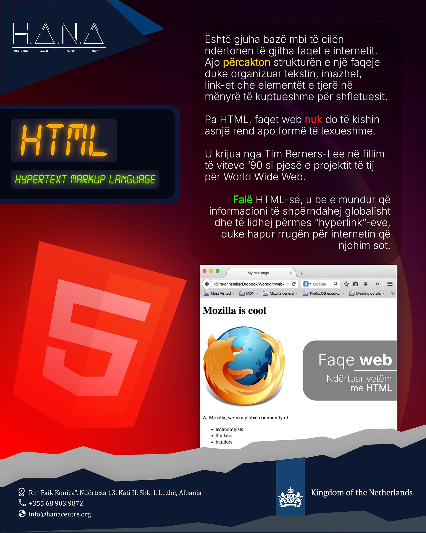 At the Web & Graphic Design course @ H.A.N.A Centre, participants will learn the core languages that power the internet: