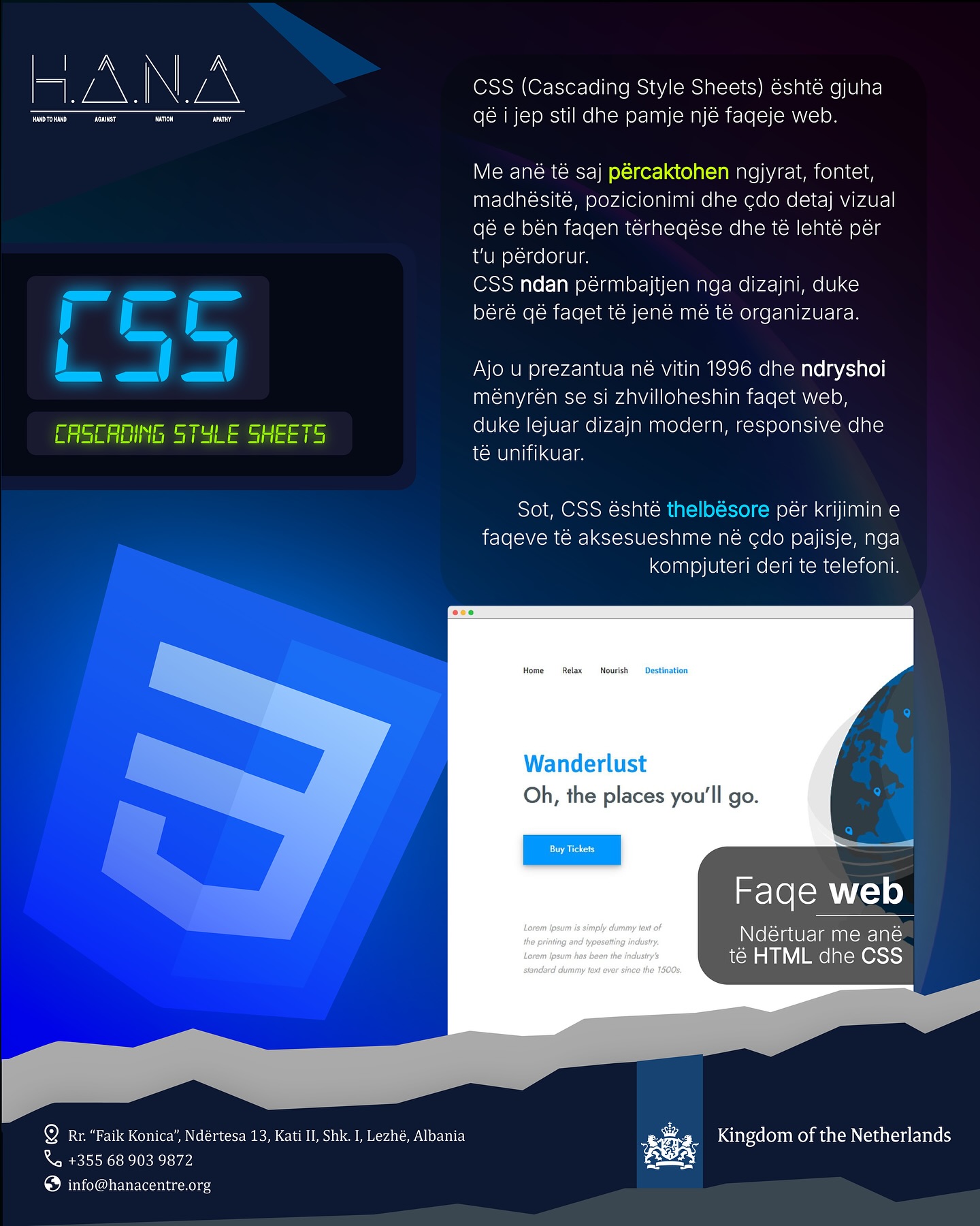 This edition of the course is organized with the support of the Embassy of the Kingdom of the Netherlands in Albania, as part of the program “THRIVE: Transforming and Harnessing Resources to Inspire and Empower Youth.”