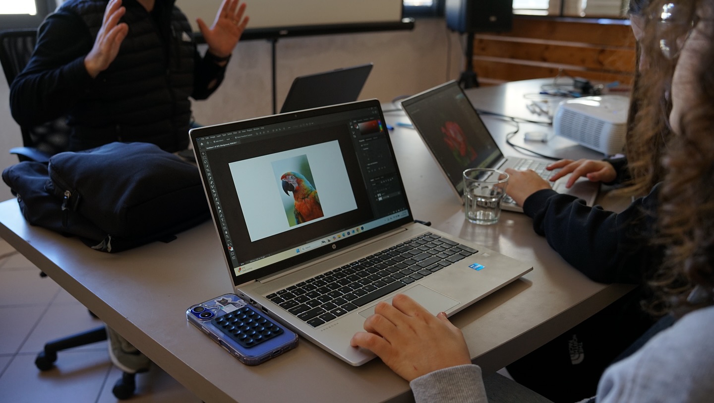 At the end of the session, participants applied what they learned by creating designs that combined masks, text, and images – practicing essential techniques for manipulating details and achieving visually compelling results.