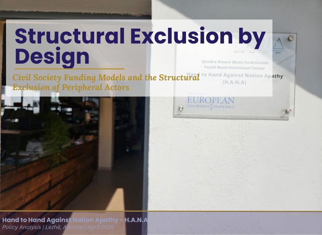 Structural Exclusion by Design by admin H.A.N.A dhe Media April 22, 2026 Civil Society Funding Models and the Marginalization of Peripheral Actors Hand to Hand...